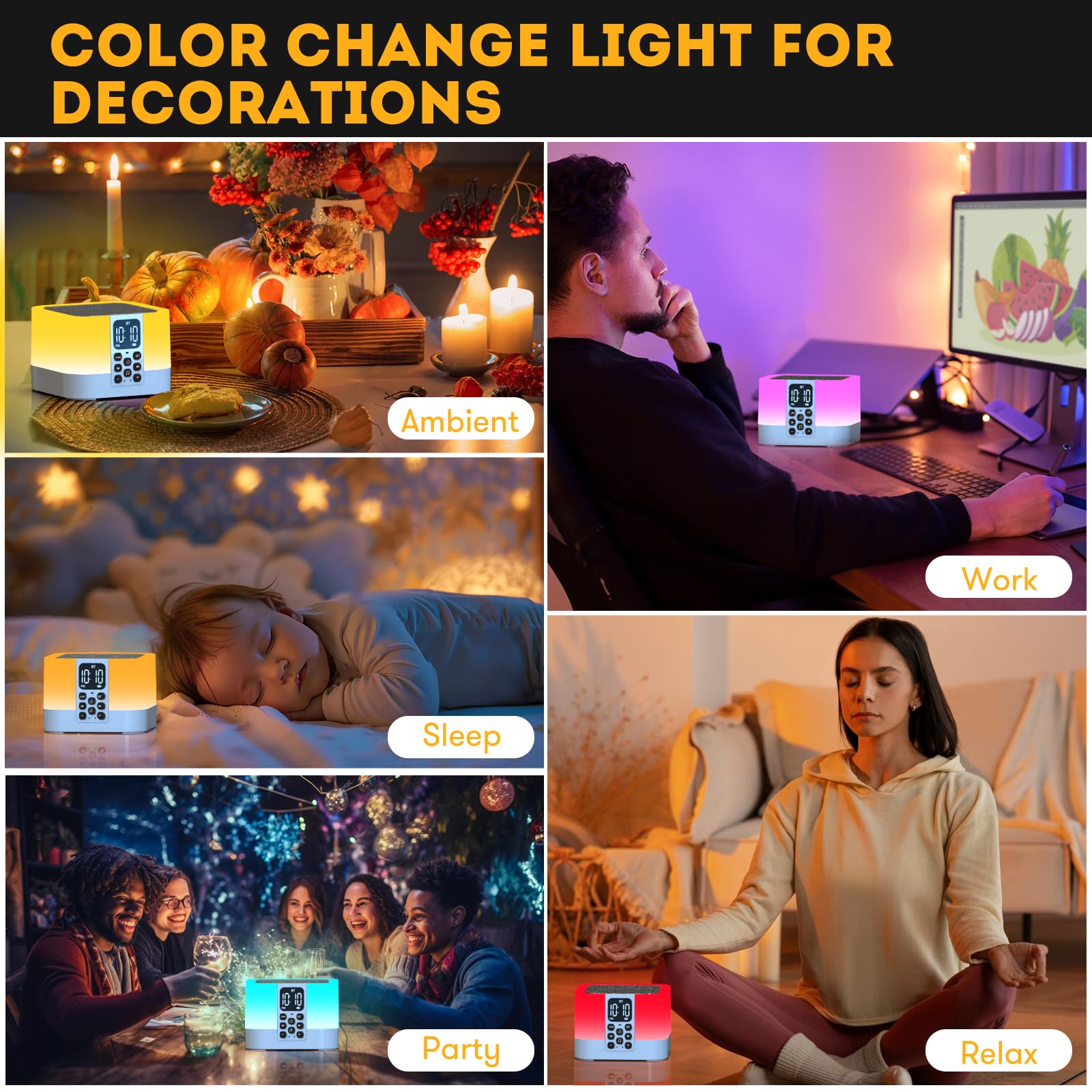 - 4-in-1 Multifunktion: Kombiniert Wecker, Hi-Fi Bluetooth-Lautsprecher, mehrfarbiges Nachtlicht und Soundmaschine in einem Gerät. Spart Platz, reduziert Kabelsalat und bietet mehrere nützliche Funktionen bequem vereint – ideal für zu Hause und unterwegs
